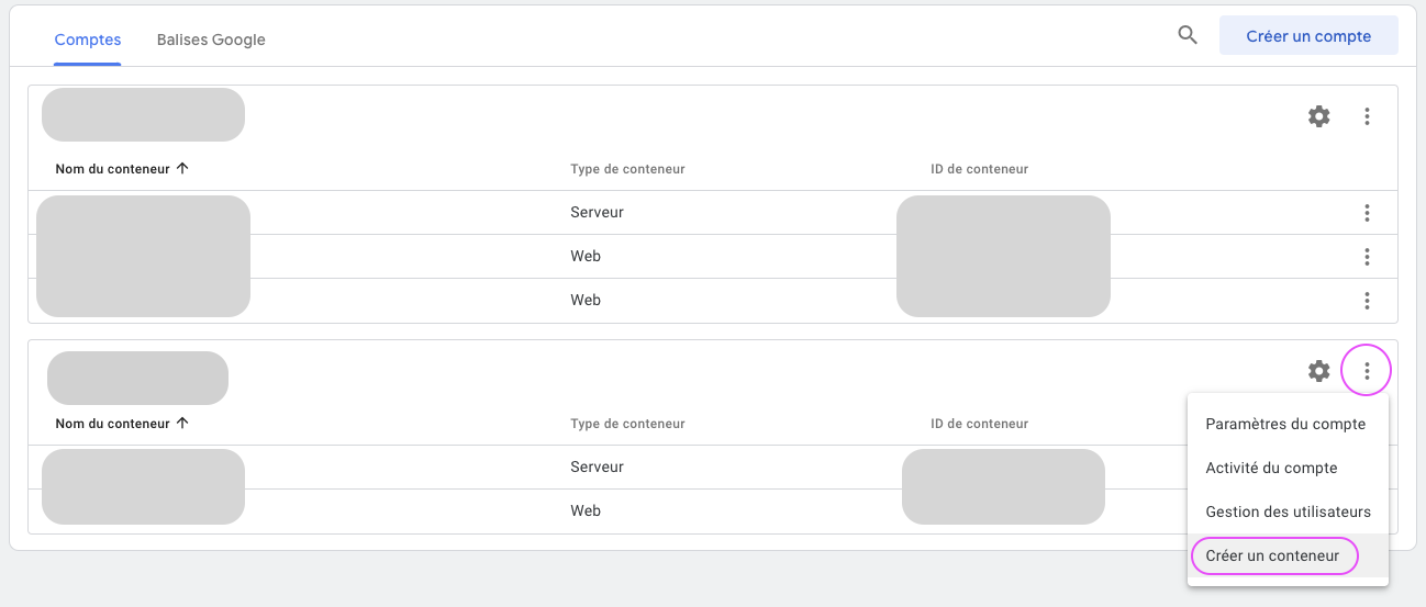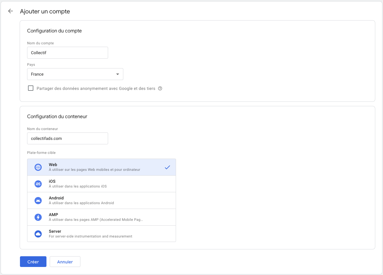 Création du conteneur web dans GTM