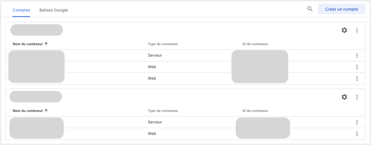 Dans cet article de blog nous allons nous focaliser sur l’implémentation de votre API de conversion Meta en server-side. Pour cela vous allez avoir besoin d’un compte GTM avec 2 conteneurs, web et server et d’une propriété GA4. Dans l’ordre voici les étapes :