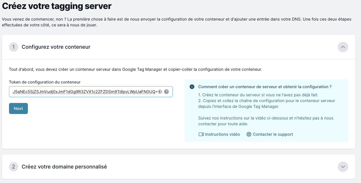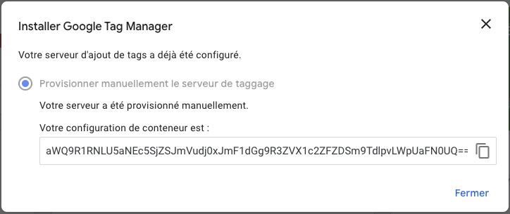 Copiez ensuite l’id de votre configuration de conteneur. Cochez “provisionner manuellement le serveur de taggage”.