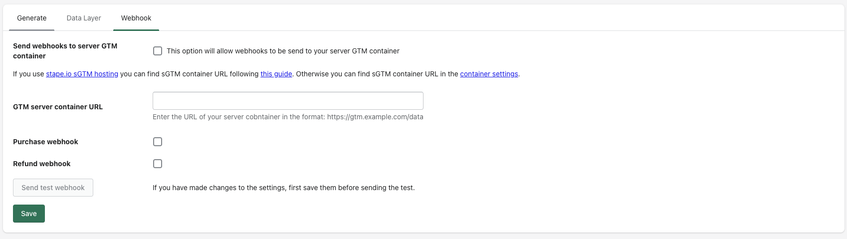 Vous pouvez laisser décochées toutes les cases de la partie Generate et Webhook :