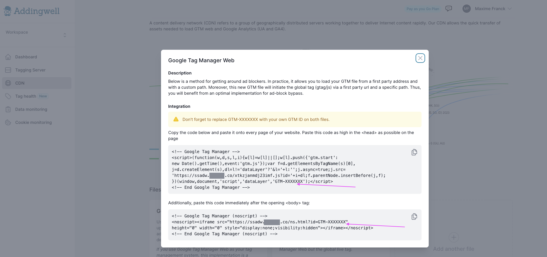 Maintenant, allez dans l’onglet CDN d’Addingwell puis cliquez sur How to setup Google Tag Management Web.