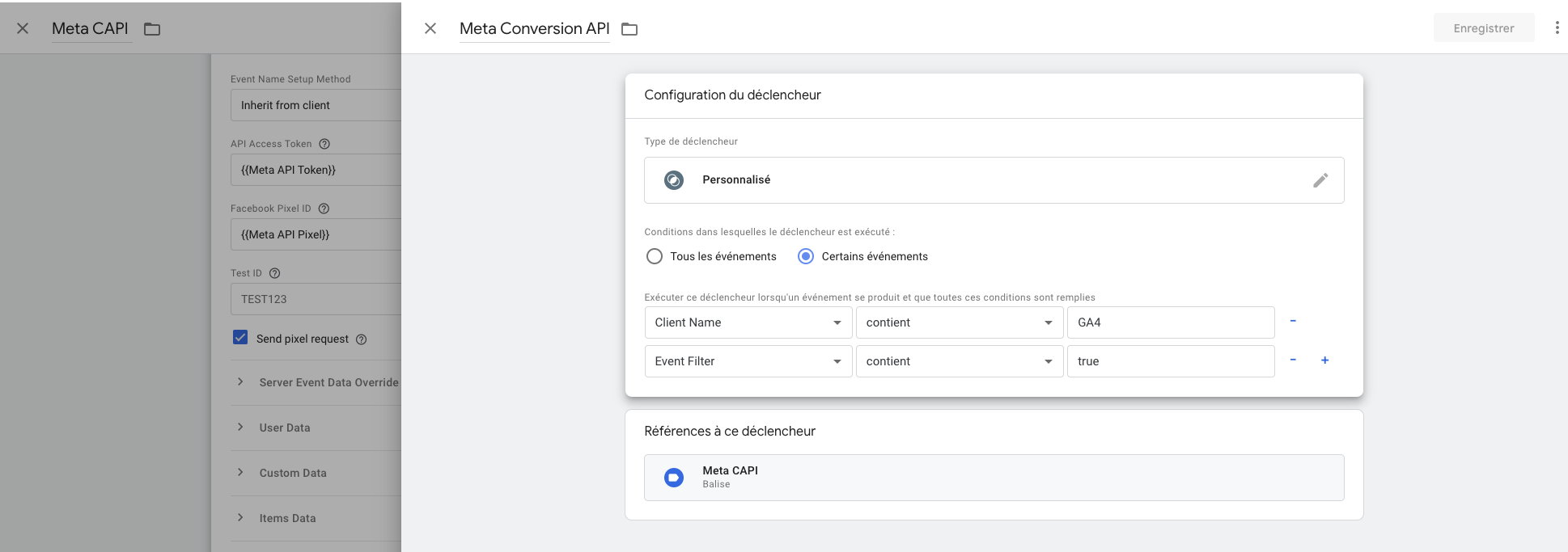 Ceci permet de dire à l’API de conversion dès qu’il y a un événement GA4 qui se déclenche tu peux le remonter.
