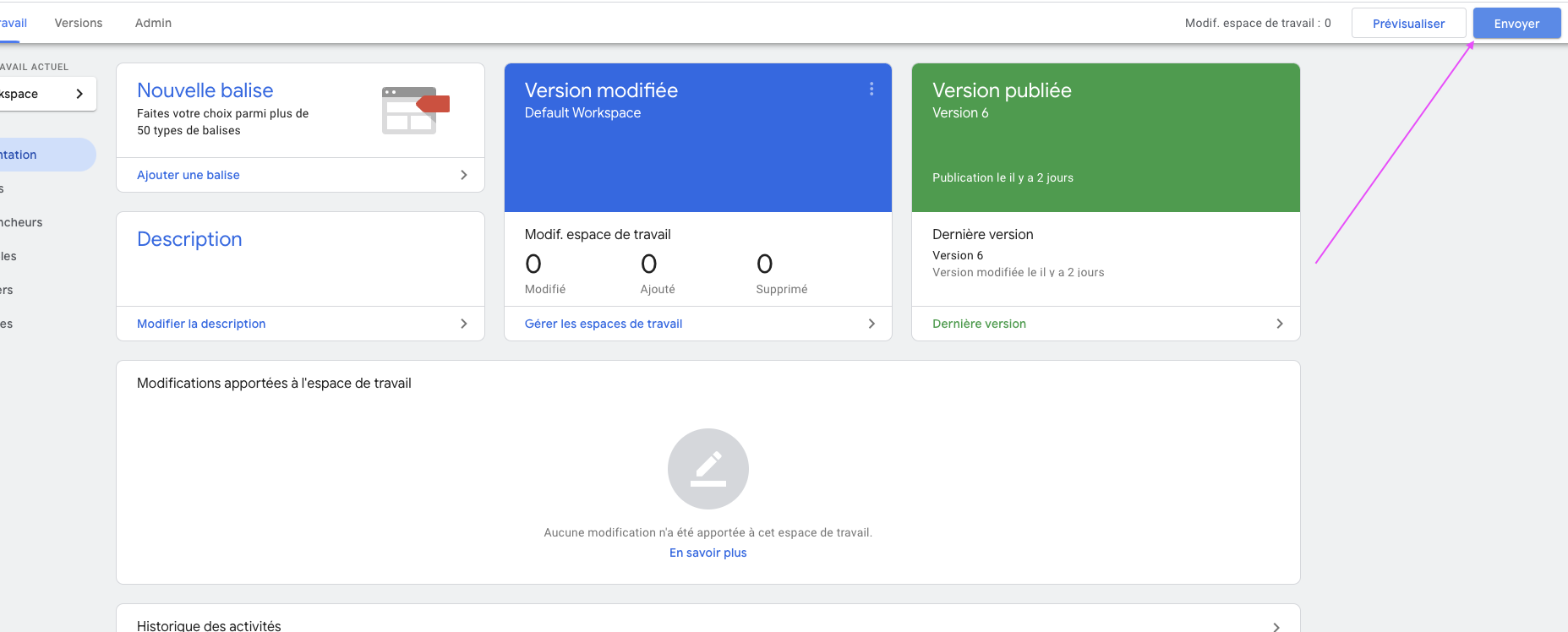 Vous n’avez plus qu’à mettre en prod tout le travail réalisé en publiant toutes les modifications et pour cela vous devez cliquer sur Envoyer > Publier > Continuer.